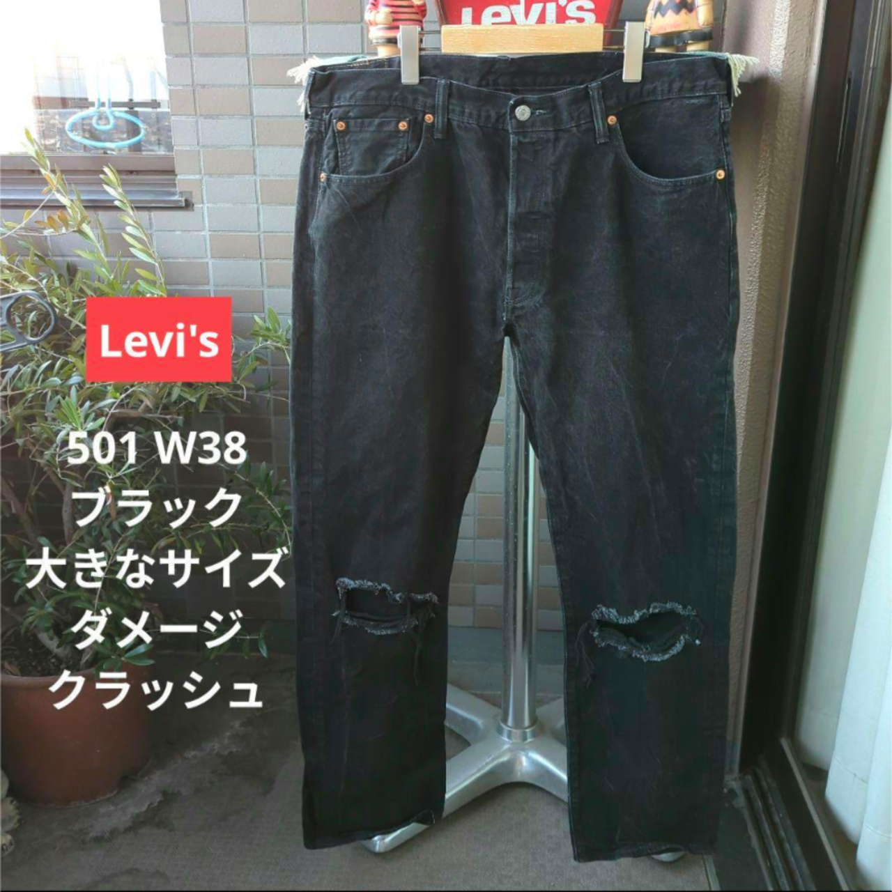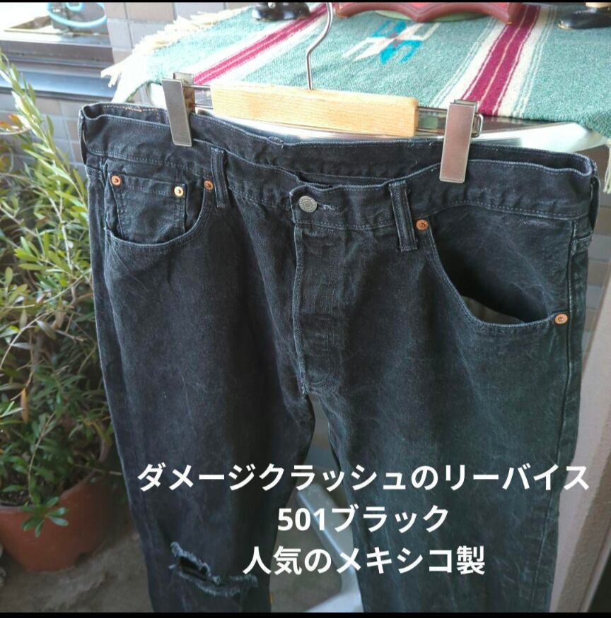 a2053 levis リーバイス 501 W38 ブラック大きなサイズ ダメージクラッシュ