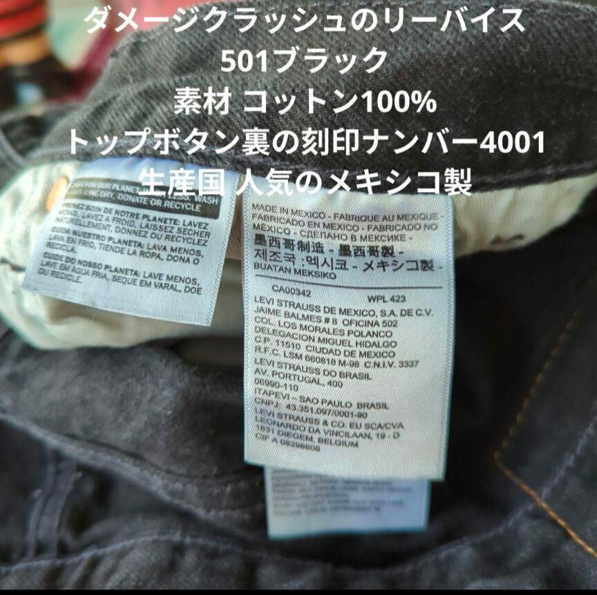 ■ダメージクラッシュの大きいサイズのリーバイス501ブラック