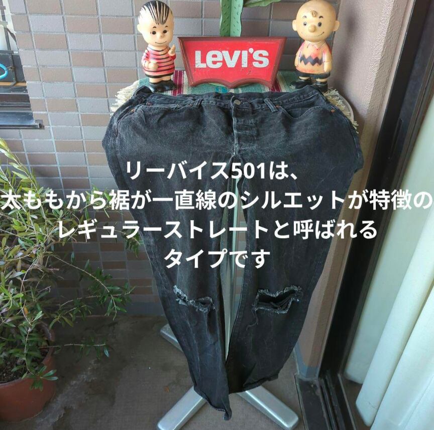 ■501は、太ももから裾が一直線のシルエットが特徴のレギュラーストレートと呼ばれるタイプです