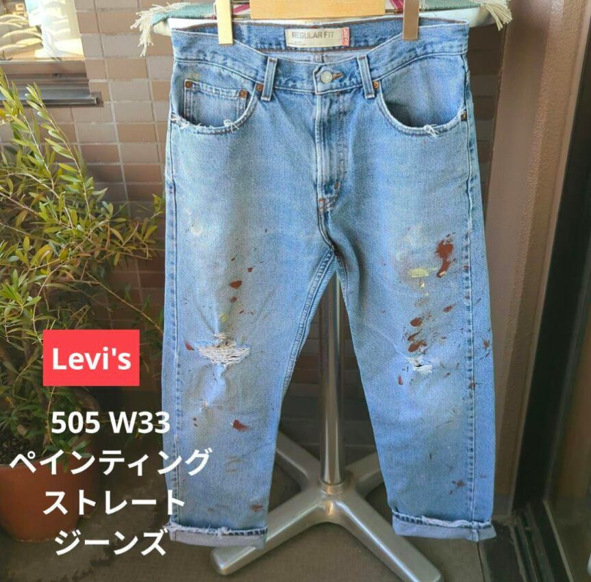 a2165 levis リーバイス 505 W33 ペインティング ストレートジーンズ