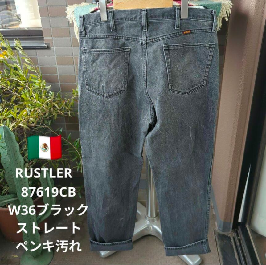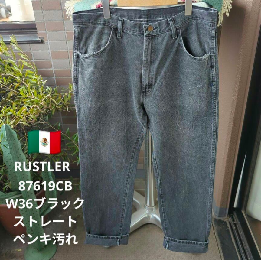 a2188 RUSTLER ラスラー 87619CB W36 ブラックデニム ストレート ペンキ汚れ