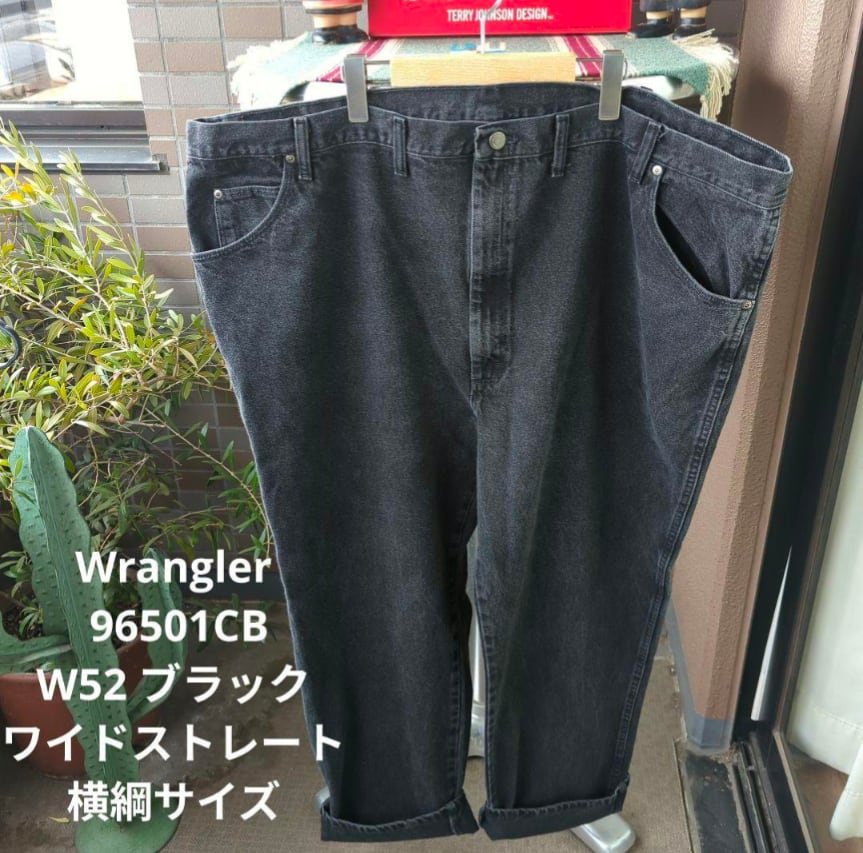 a2189 ラングラー Wrangler 96501CB W52 ブラックデニム ワイドストレート横綱サイズ